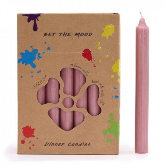 Solid Colour Dinner Candle Set - Pack of 21 - Rustic Dusty Pink